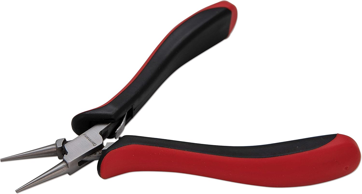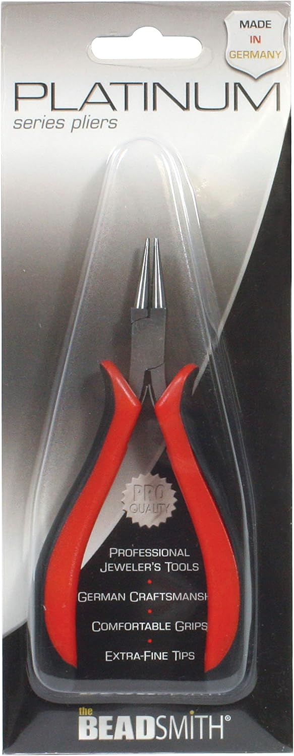 Designed to make jewelry repair improvement and creation easier the Beadsmith Platinum Series German Round Nose Pliers are an excellent addition to any jewelry making supplies or jewelry repair kit. Made from high-quality hardened polished steel this tool is durable heavy duty and built for doing heavier work. The box-joint construction is reliable and great for smooth operation while the ergonomic comfort grip handle helps reduce hand fatigue so you can create and repair many jewelry creations. The break strength is Rockwell Hardness 42 - 45. Round nose pliers are essential for creating consistent well-shaped bends and loops. The jaws are solid steel that are thickest at the base and taper to be thinner at the tip. Depending where you put your wire on the jaw will decide the size of your loops. The surface on the inside of the jaws is completely smooth not serrated. This is extremely important to avoid marring and scratching your wire as you work with it. Because of their innovative design these pliers make straightening or bending metal wire or looping soft metals to create amazing jewelry pieces. They are ideal for creating links for chain or ring for chain mail with precision. Great for making eye pins jump rings and bail art. These are great for jewelry making as well as other arts and crafts projects. Whether you are a beginner or making a living with your jewelry designs we know you will find this tool absolutely essential. This plier makes a great addition to your art and craft supplies. Because these pliers are so versatile they make a great gift for Christmas a birthday or any special occasion. Making DIY jewelry and fashion accessories has never been easier!