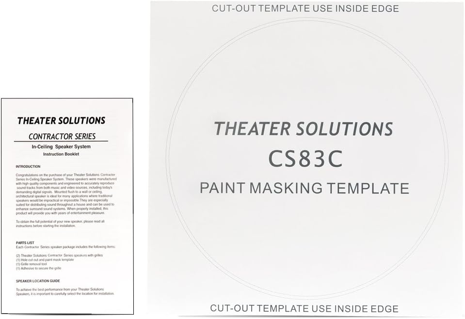 Theater Solutions CS83C Contractor Series 3-way in-ceiling speakers are newly designed for consumers who demand powerful bass in a compact package. Their easy in-ceiling installation and Ultra wide sound dispersion design make them ideal for discreet, single or multi-room installations. All of Theater Solutions models feature the latest swing-out dog leg mounting system for easy installation, paint-able White aluminum. The polypropylene mica driver was designed for extended throw providing a full range of tones coupled with time-tested toughness. The Mylar dome midrange and Mylar dome tweeter are located inside the woofer to direct sound at listeners, and its back chamber smooths and extends its performance. These state of the art Components all add up to superior quality and design at a value that is second to none!