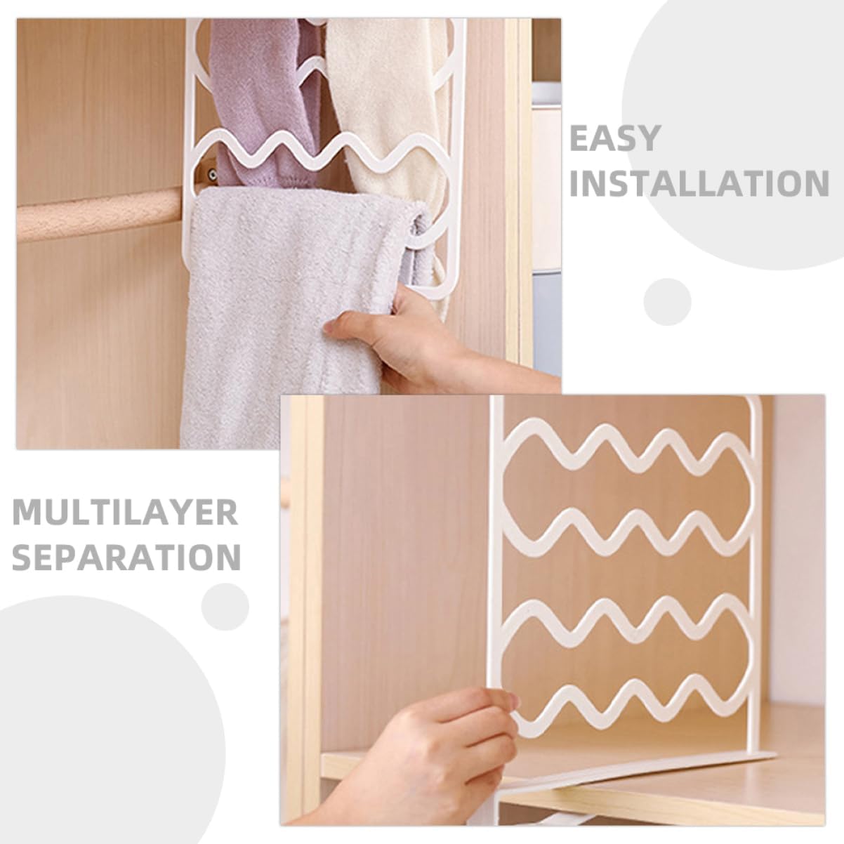 Package List 10 dividers Characteristics -Versatile fit: adjustable width makes these dividers compatible with various wardrobe sizes, providing a versatile storage purse dividers for closet -Space optimization: multilayer dividers maximize the use of wardrobe space, allowing you to store more items neatly and efficiently closet organizer shelves -Easy installation: the nodrill design allows for installation, saving you time and effort while keeping your wardrobe intact clothes dividers for closet -Modern aesthetic: the sleek and modern design complements any wardrobe style, adding a touch of elegance to your closet organization clothes separators -Durable construction: made with pp materials, these dividers are built to last, ensuring longterm use and reliability bag organizer closet -Material:PP plastic dividers -Size:57.00X51.00X2.30cm/22.40X20.04X0.90in closet shelf divider -Color:White closet organizerGoods Informationhandbag storage organizer Use them to separate sweaters, handbags, and other items, ensuring everything has its own designated space and is easy to find when you need it.shelves for bedroom organizer Designed to fit standard closet shelves, these dividers allow you to create custom storage without the need for tools or hardware.closet shelf organizer Transform your closet with our versatile shelf dividers