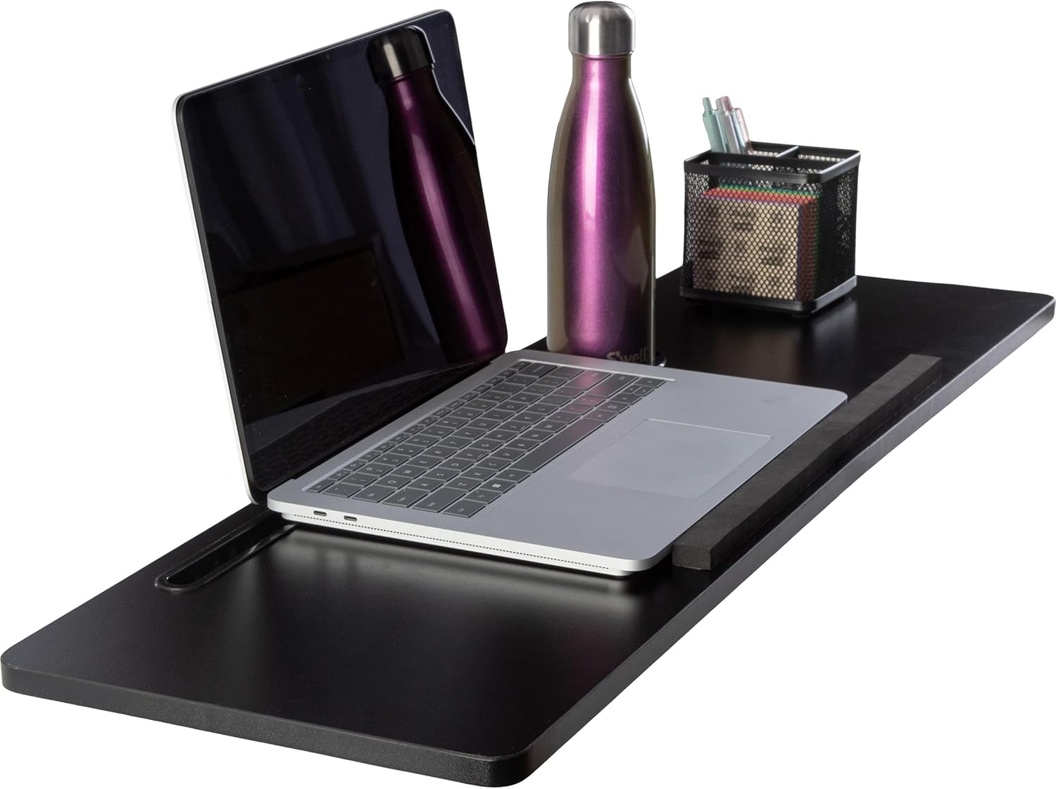 The Standing Desk for Treadmill by Wakeman makes it easy to multitask during your workout, providing a stable surface for your tablet, computer, or smartphone. The universal size fits most treadmills, accommodating handlebars 26.8” - 34” wide and securely attaches to your machine with hook and loop straps. Rubber pads on the bottom of the treadmill laptop tray help prevent it from slipping while also protecting your exercise equipment from scratches, and the built-in cupholder and tablet slot provide a convenient spot to stash your necessary treadmill accessories. Wakeman is your source for workout equipment designed to help you reach your fitness goals in the comfort of your own home. IMPORTANT: Wakeman is committed to providing the consumer with the absolute best price and value on all of our products. NOTE: This is an exclusive product of Wakeman and ONLY Standing Desk for Treadmill by Wakeman is GUARANTEED to be genuine. Avoid buying counterfeit products and transacting with unauthorized sellers. Wakeman is a registered trademark protected by U.S. Trademark law and will be vigorously defended.