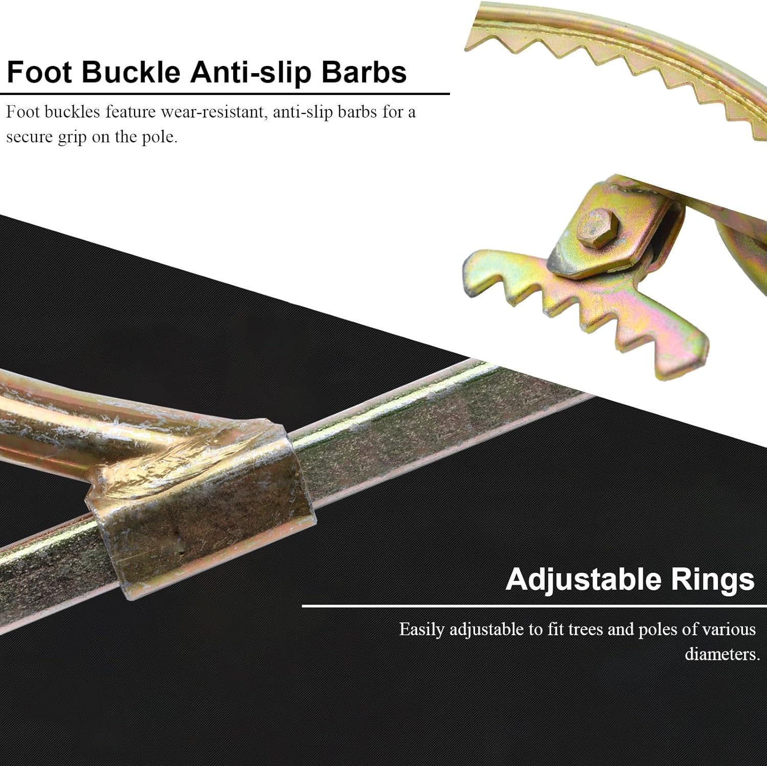 Experience the ultimate in tree climbing safe and performance with our premium Tree Climbing ar, designed for both enthusiasts and professals. Crafted from seamless triangular high-manganese steel, this climbing tool supports up to 400 kg (881 lbs), ering you can confidently tackle your climbing ta, whether for tree maintenance, fruit king, or utili work. Safe and comfort are paount. Our ar features five-hole anti-slip footplates equipped with anti-slip spikes, providing a secure grip and stabili at heights. The widened harness enhances comfort, allowing you to on your climb without distracts. With adjustable loops, our climbing ar accommodates trees and poles of various diameters, making it incrbly versatile for different climbing scenarios. Choose from a ran of models tailored to your needs, from Model 200 to Model 600, each designed with specific opening diameters and applicable pole heights. This eres you can find the perfect fit for your climbing envirnt. The cact and lightweight design makes it easy to transport, so you can enjoy climbing adventures anytime, anywhere. Our Tree Climbing ar is not just about gth; it’s about enhancing your climbing experience. The adjustable foot buckle size and safe belt provide flexibili and convenience, making it suitable for both beginners and seasoned climbers. Whether you're practicing tree climbing techniques, king fruit, or working on power poles, this tool is engineered to help you reach new heights safely and efficiently. Before use, please ere your waist and foot seat belts are securely fastened. We recommend practicing at lower heights to become accustomed to the ar before attempting higher climbs. With our commitment to quali and customer satisfact, we are here to assist you with any quests or concerns. Elevate your climbing experience with our reliable Tree Climbing ar today!