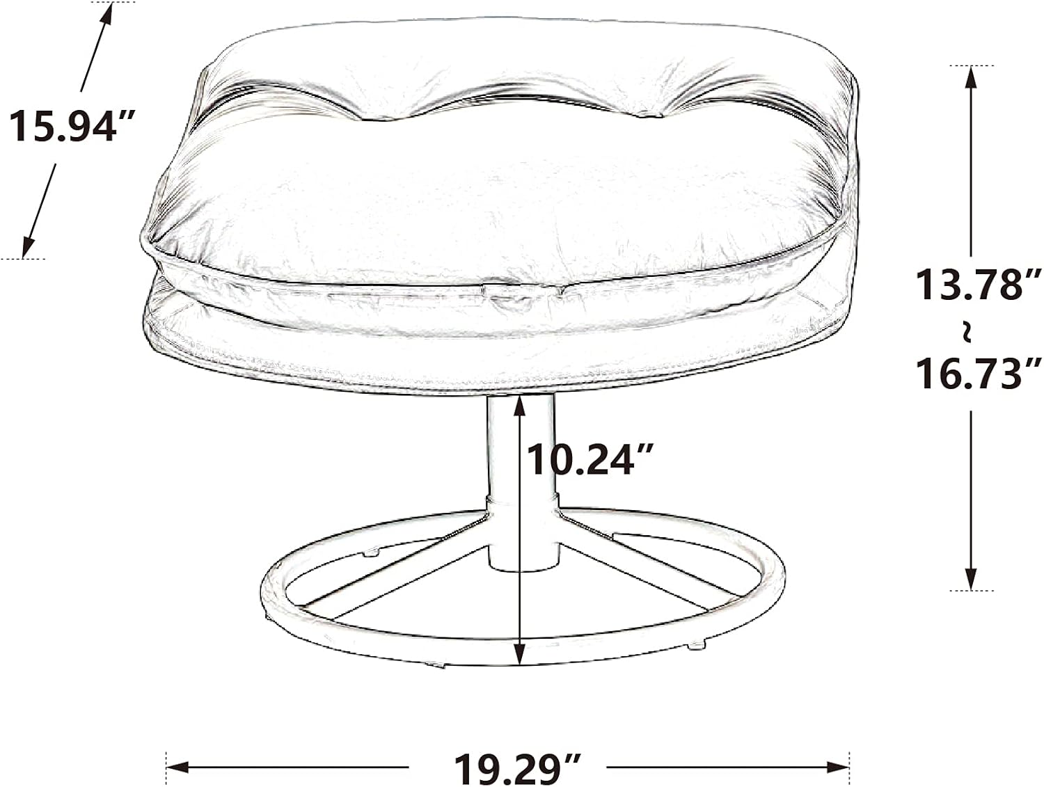 SpecificationsUpholstery Material: VelvetWeight Capacity: 250 PoundsFrame Material: MetalArms Included: NoOttoman Included: YesLeg Color: BlackSwivel: YesSeat Construction: MDFToss Pillows Included: NoProduct Care: Spot wipes clean with a soft,dry clothNumber of Chairs Included: 1Legs Material: MetalLeg Material Details: Doesnot applyLevel of Assembly: Partial AssemblyAdult Assembly Required: YesCommercial Warranty: YesItem Weight: 55 pounds(with ottoman)Chair back height: 16.22"Seat depth: 20.47"Seat width: 20.08"Chair Dimensions: 31.73" W x 33.50" D x 33.78" HOttoman Dimensions: 19.29" Wx15.94" Dx16.73" HKind Reminder: Product pictures are for reference only. Real product's color may be a little different from the image due to the lighting or monitor's display. If you have any problems, please feel free to contact us, we will try our best to make you satisfied.