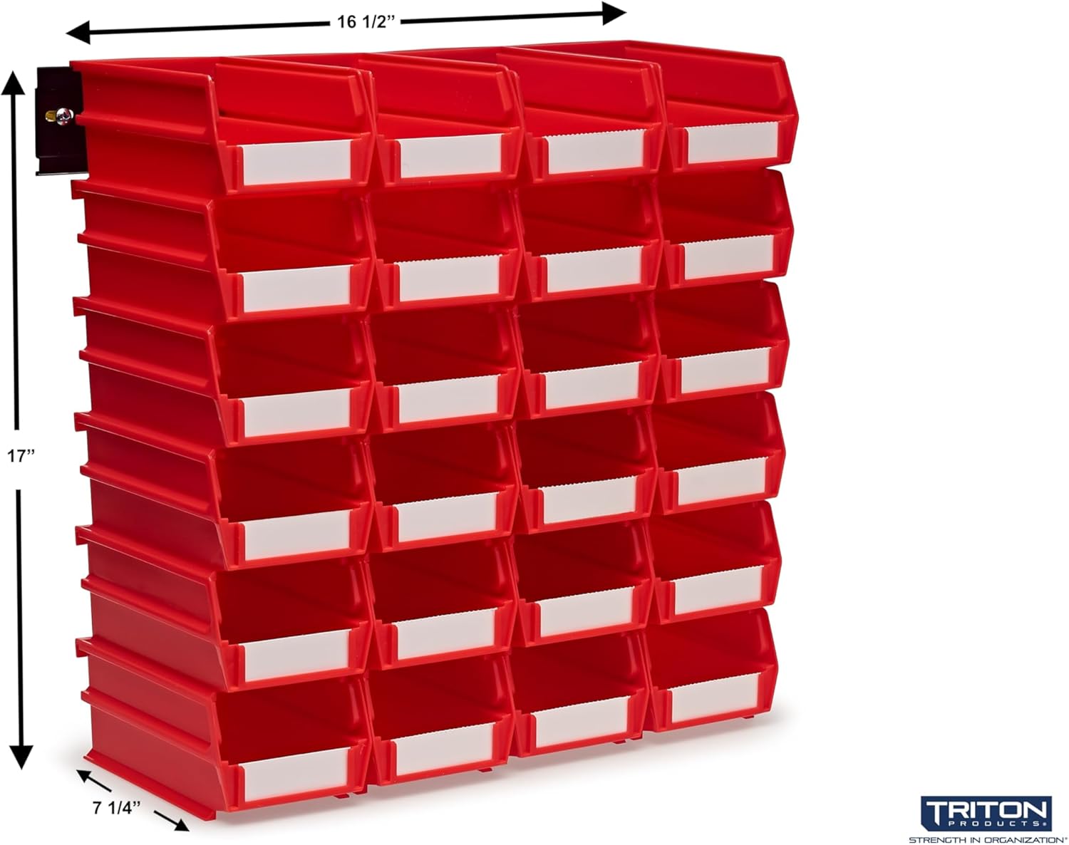 26-Piece Wall Storage Unit with 7-3/8-Inch L x 4-1/8-Inch W x 3-Inch H Red Interlocking Poly Bins, 24 CT, Wall Mount Rails 8-3/4-Inch L with Hardware, 2-Pack.