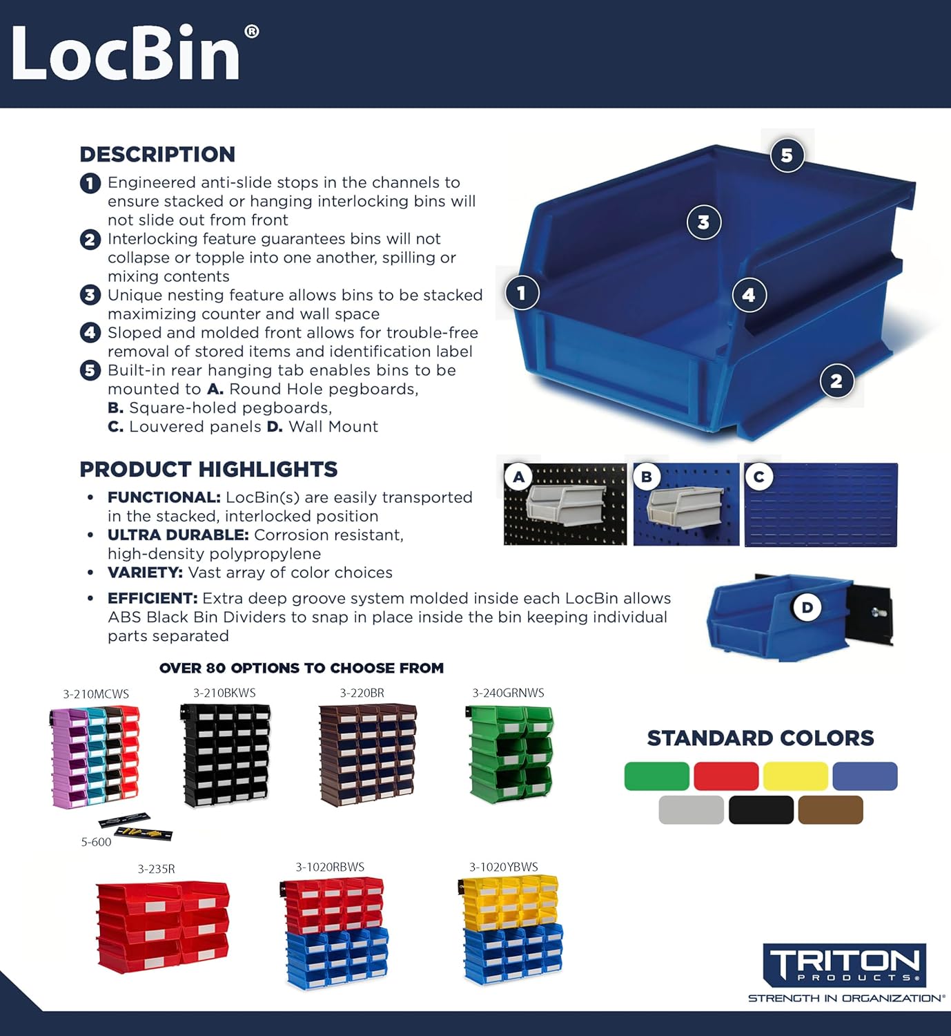 | Included Components | (2) Wall Mount Rails, (24) Identification labels, (24) Interlocking, and Stacking Bin, Hardware |