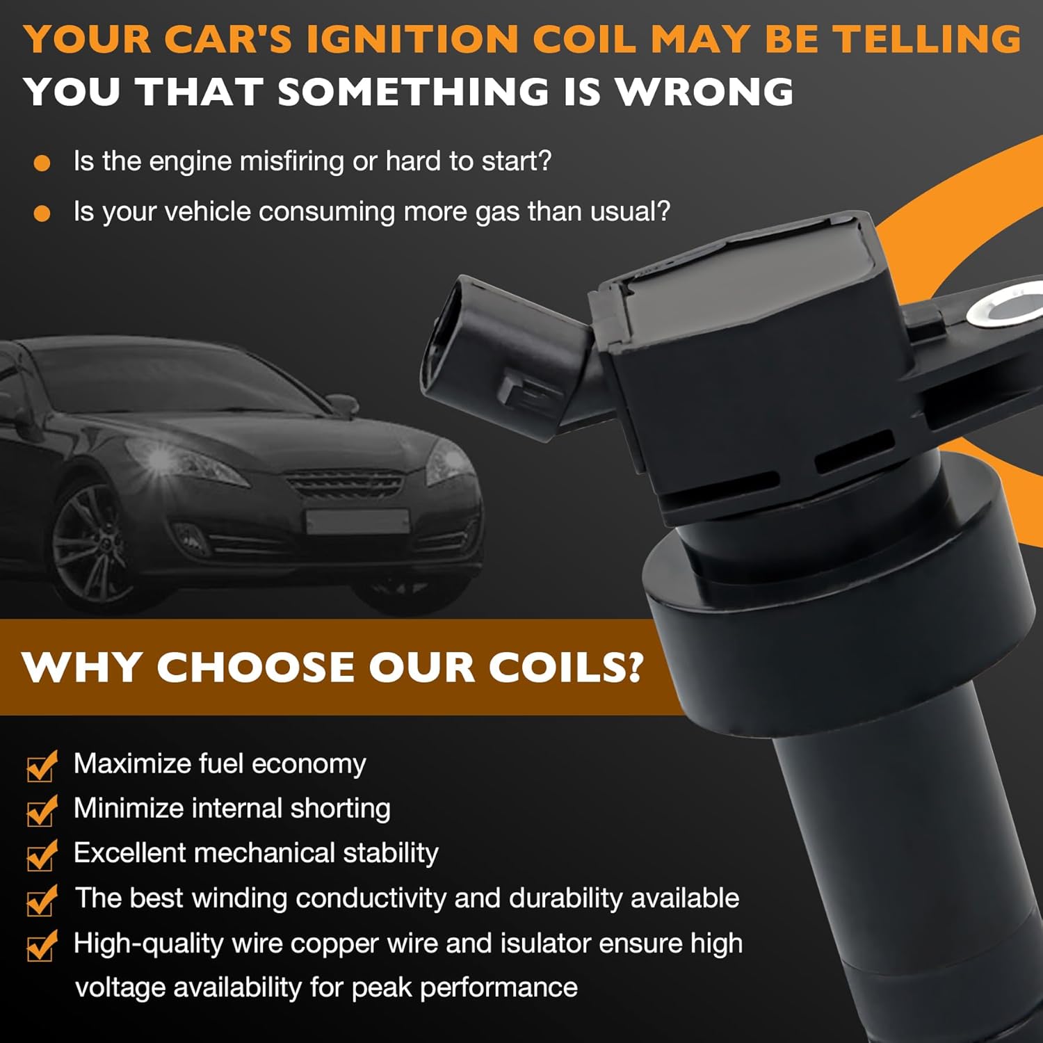 Is this the ignition coil you are using?The durability of the insulation material is poor, the internal resistance of the coil is large, the heat is large, and the life of the ignition coil is short.Boost your vehicle's performance with our high-quality ignition coil. Designed to meet the demands of today's engines, this coil is the key to a smoother, more efficient ride.Compatible with:2012-2021 Hyundai Accent L4 1.6L2012-2017 Hyundai Veloster 1.6L L4 excluding Turbo Models2012-2013 Dodge Attitude 1.6l L42012-2019 Kia Rio 1.6 L42012-2019 Kia Soul 1.6 L4Reference Number:UF652, E1152, 273012B100, C1803, 1788509, GN10634, 27301-2B100, COP554, 5C1860, 48943, 21A0111, E1152, C-813, 50148, 52-2198, UF-652, 273012B100.Easy to Install:Open the ignition coil cover on the top of the engine.remove the fastening screw of the ignition coil with a wrench.remove the ignition coil power plug, gently tilt up with a screwdriver.remove the ignition coil, put in a new ignition coil, tighten the screw.connect the power plug, and cover the top cover.Upgrade your vehicle's ignition system today with our ignition coil and experience the difference in performance and reliability.