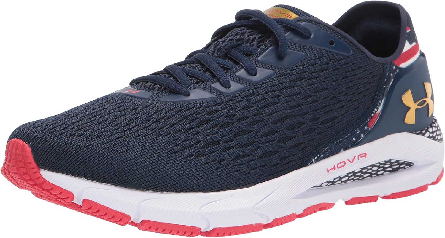 Under Armour HOVR Sonic 3 sports shoes for men - stay lighter than air during exercise with these essential men's running shoes.Incorporating Under Armour distinct HOVR technology, these men's training shoes offer a light "zero gravity" feeling to maintain energy return that helps eliminate the feel of impact. The compression mesh Energy Web contains and moulds the UA HOVR foam to give back the energy you put in. The micro-thread upper dries quickly and provides a breathable, compression-like fit for lightweight strength. The tongue is attached to the footbed by stretchable support wings to maintain a snug fit throughout the foot. An external TPU heel counter gives additional support and structure, and blown rubber under the forefoot and high-abrasion rubber under the heel help absorb ground contact. Finally, the shoes feature removable, anti-microbial Ortholite sockliners which mould to the foot for customised comfort and cushion. The runners are made of mesh.An embedded Record Sensor tracks, analyses and stores detailed running metrics to inform about ways to improve the performance and connects to "MAP MY RUN" via any digital device.Under Armour Makes Athletes Better.Under Armour started with a T-shirt that gave athletes an undeniable advantage and ultimately resulted in a complete renewal of sportswear. Innovation is their lifeblood and the key to achieve brand mission.The product details:Modern men's running shoesdistinct HOVR technologyEmbedded Record SensorFast-drying fabricComfortable and breathableMaterial: MeshFit: Men's