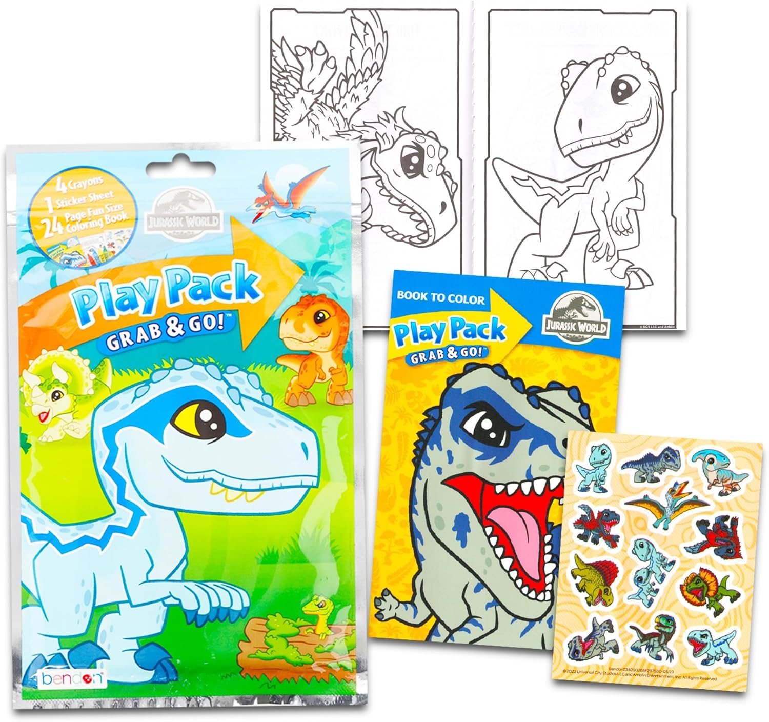 Jurassic World Pack ~ Bundle of 12 Jurassic World Play Packs Filled with Stickers, Coloring Books, Crayons with Bonus Loot Bags and More. Each pack contains a fun-size Jurassic World coloring book, 25 Jurassic World stickers and 4 crayons. This bundle also includes a Rexman door hanger and bonus loot bags. Perfect as Jurassic World party supplies, favors, decorations, motivational stickers, reward stickers or just for fun! A great gift for any fan of Jurassic World. Perfect to hand out at Jurassic World-themed celebrations. Officially licensed Jurassic World toys and games merchandise.