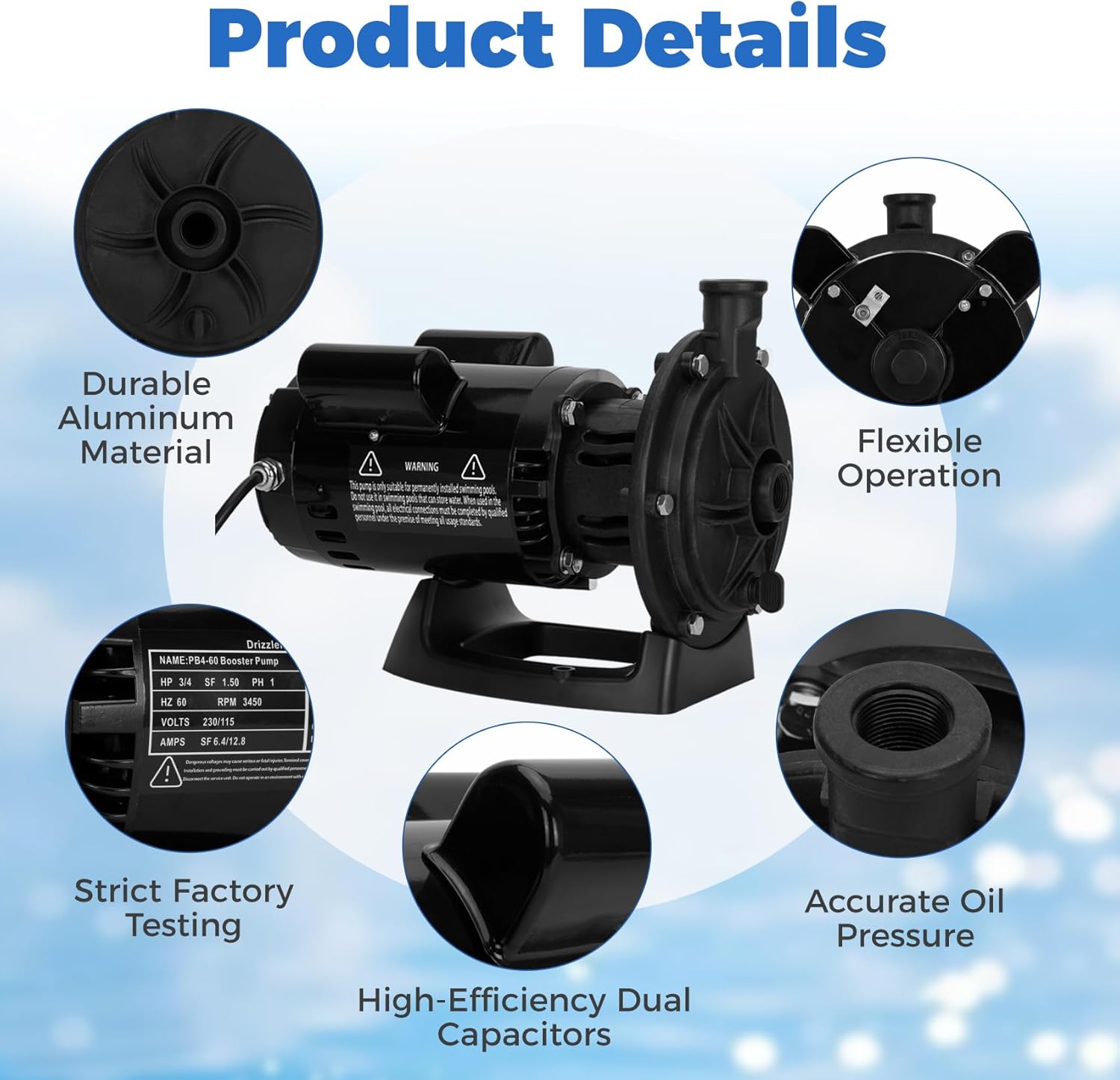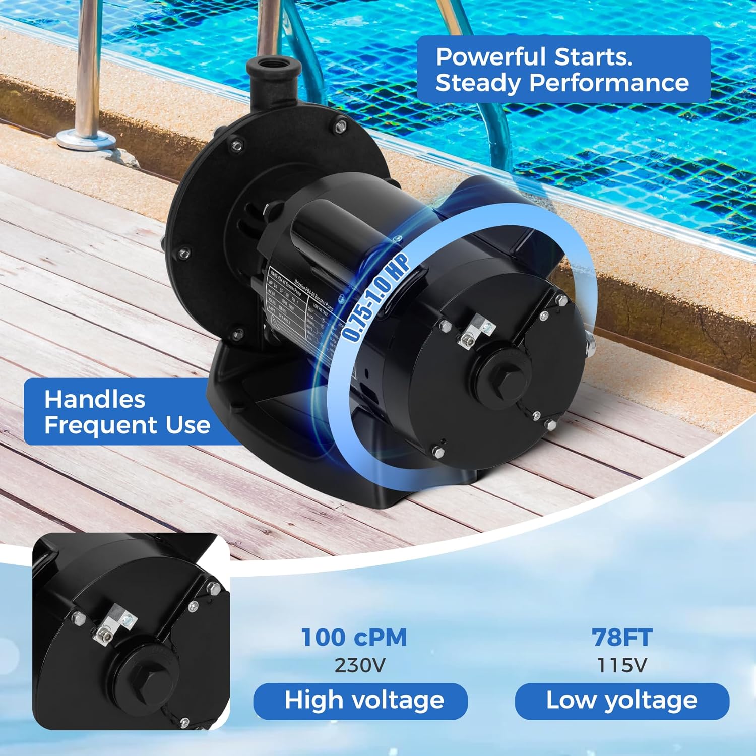 Upgraded 1HP Pool Booster Pump, Anti-Leak PB4-60 Replacement for Polaris 180-480, Dual Capacitor & 1600GPM Flow, 115V/230V Dual Voltage