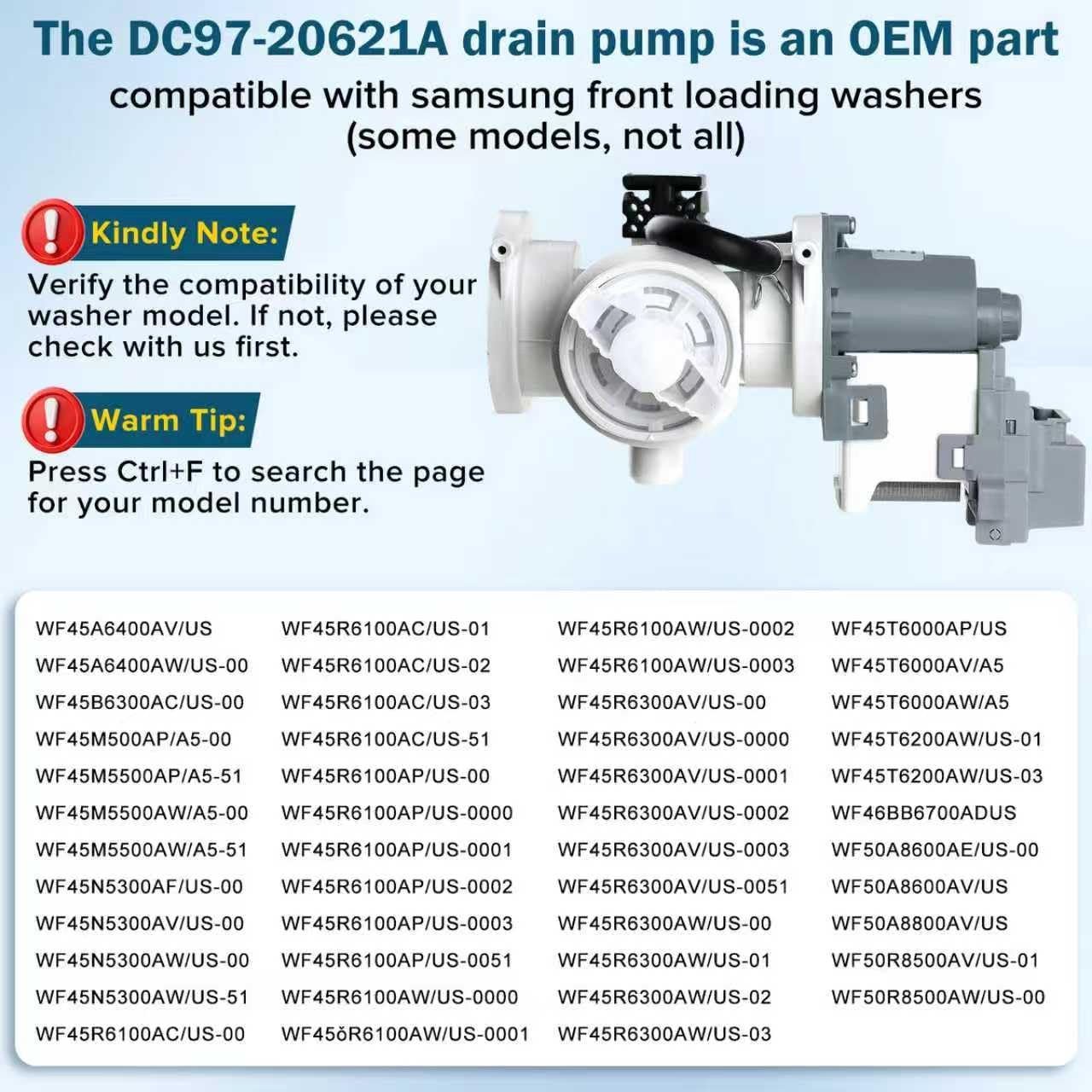 | Included Components | DC97-20621A Washer Drain Pump Assembly |