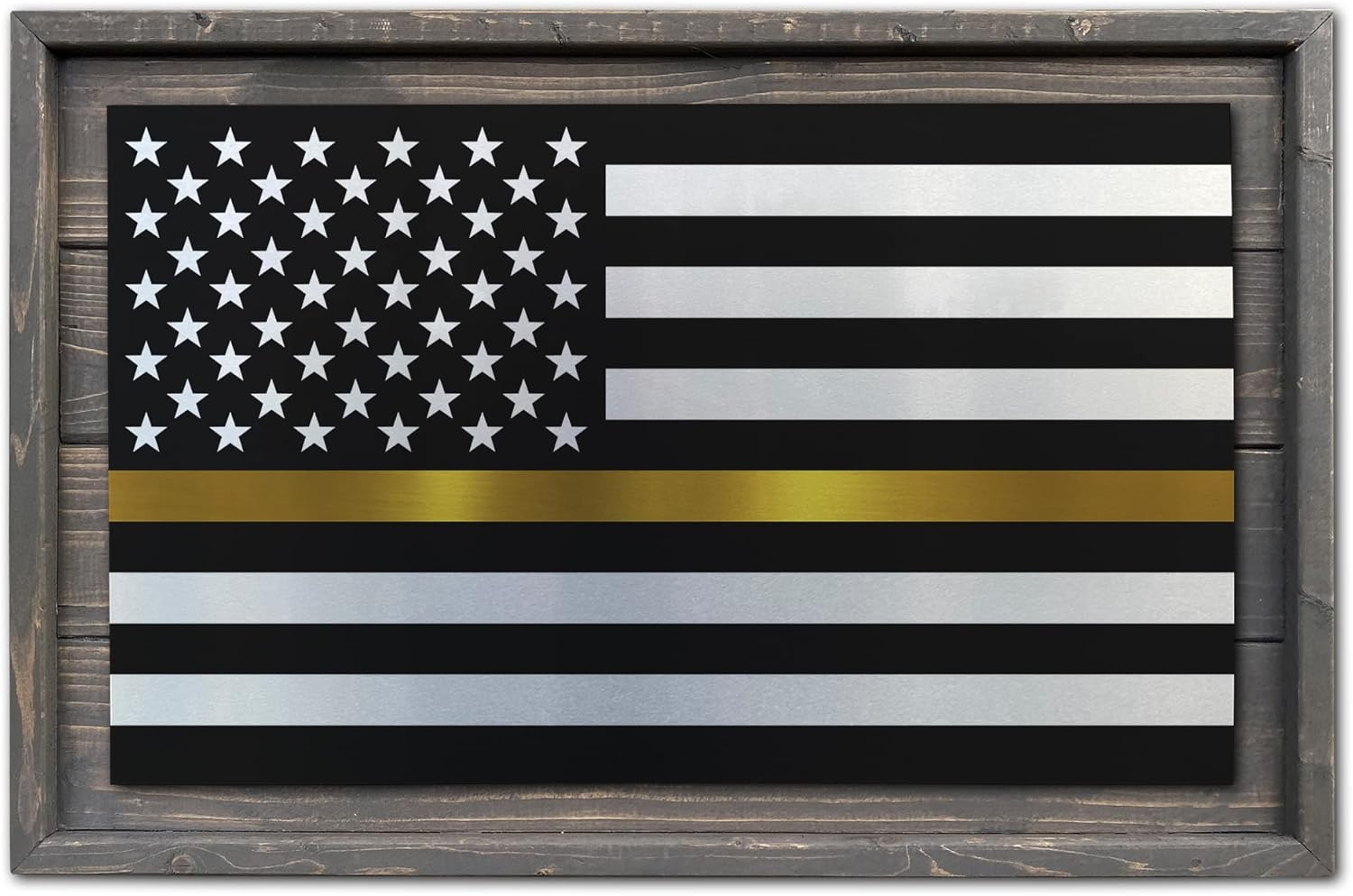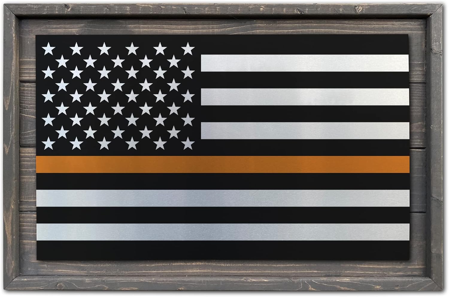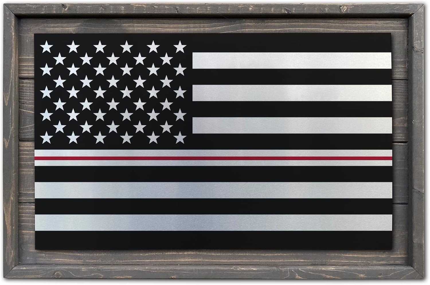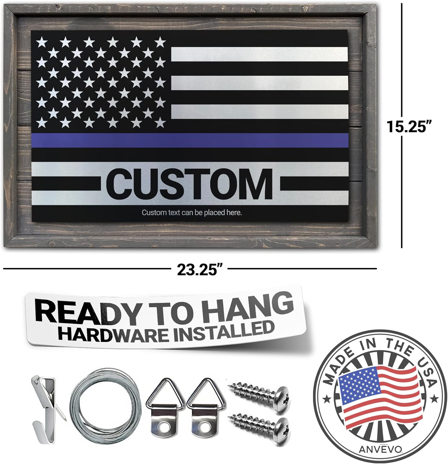 Introducing the CUSTOM Thin Blue Line American Flag, a stunning tribute to the bravery and sacrifice of our nation's law enforcement officers. Measuring 23.25 inches by 15.25 inches, this flag is expertly crafted from high-quality wood and metal, ensuring that it will last for years to come. The flag features a sleek and elegant design that is sure to catch the eye of anyone who sees it. The bold blue line in the center of the flag represents the courage and dedication of our police officers, while the classic stars and stripes pay homage to our nation's heritage. Not only is this flag a beautiful addition to any home or office decor, it is also designed for outdoor use. The durable materials used in its construction make it weather-resistant and able to withstand the elements, ensuring that it will continue to look great for years to come. Hanging the flag is a breeze, as it comes with pre-installed hardware for easy installation. Whether you choose to display it indoors or outside, this Thin Blue Line American Flag is sure to make a powerful statement and show your support for law enforcement. Order yours today and proudly display your appreciation for those who put their lives on the line to protect our communities.