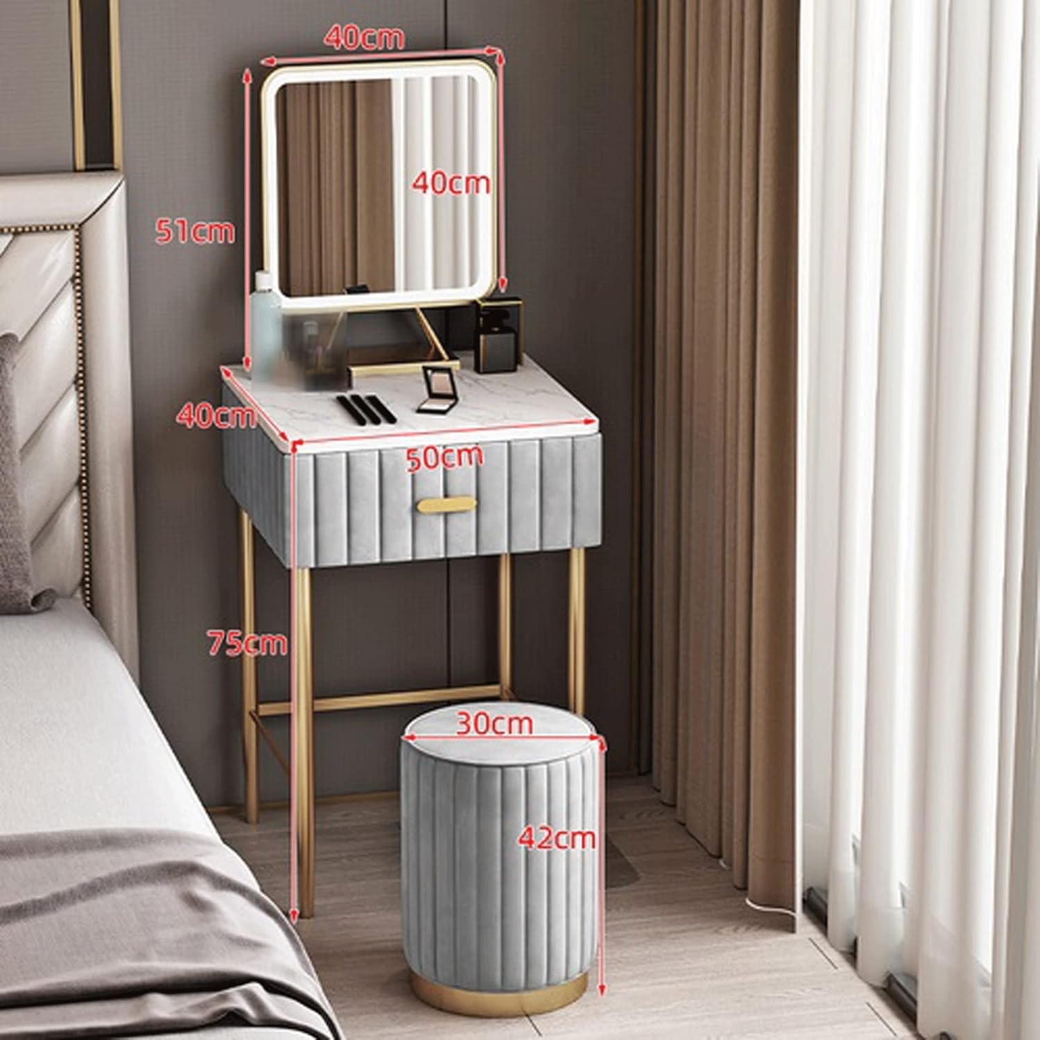 A bedside table-sized space The smooth surface is clear into a mirror and easy to scrub The light source of the light strip has no dark areas, accurate and no dead corners, reflecting your beautiful face