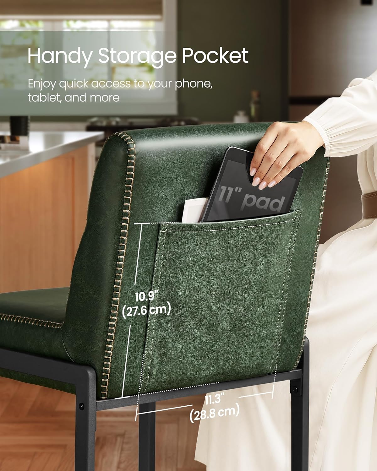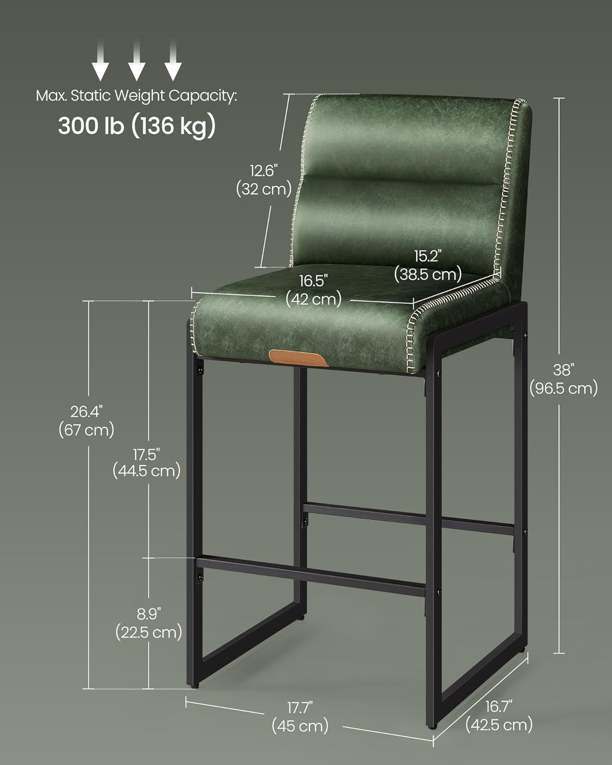 | Item Type Name | Counter Height Stools with Backs, 26.4-Inch Barstools Chairs, Synthetic Leather with Stitching, Mid-Century Modern, Dining Kitchen Island, Forest Green |