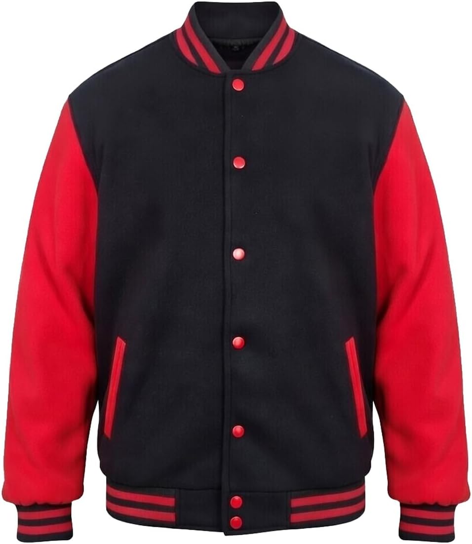 Make a statement with our Men’s Varsity Jacket, expertly crafted with a soft Fleecs made with Polyester Cotton body and durable Fleecs sleeves. This classic letterman bomber jacket With a ribbed collar, cuffs, and hem accented by sporty stripes, this jacket combines iconic varsity style with a modern edge. The snap-button front and two side pockets offer both functionality and style, making it ideal for casual wear, sports events, or as a standout layering piece. Stay comfortable and warm while showcasing your unique style in this attention-grabbing varsity jacket. Available in multiple sizes for a perfect fit!