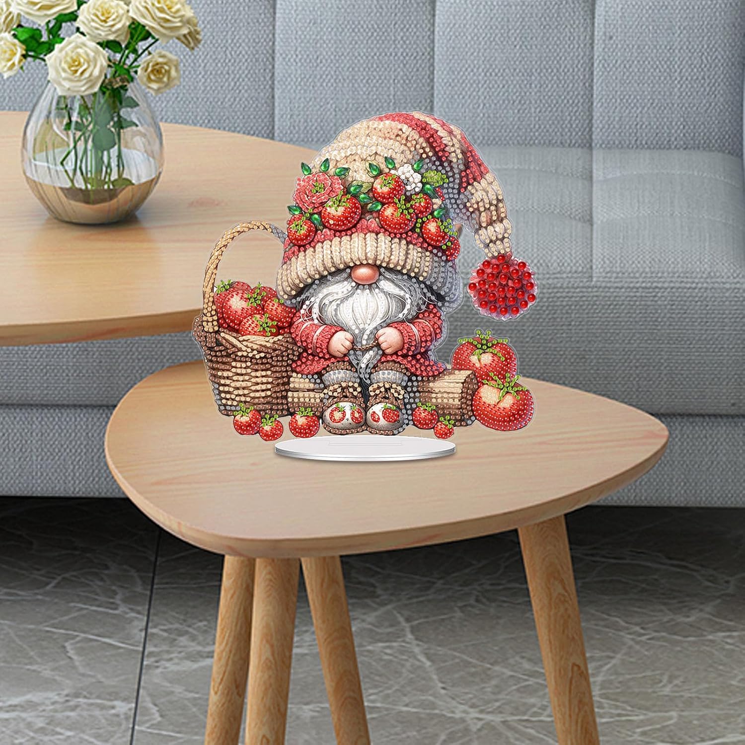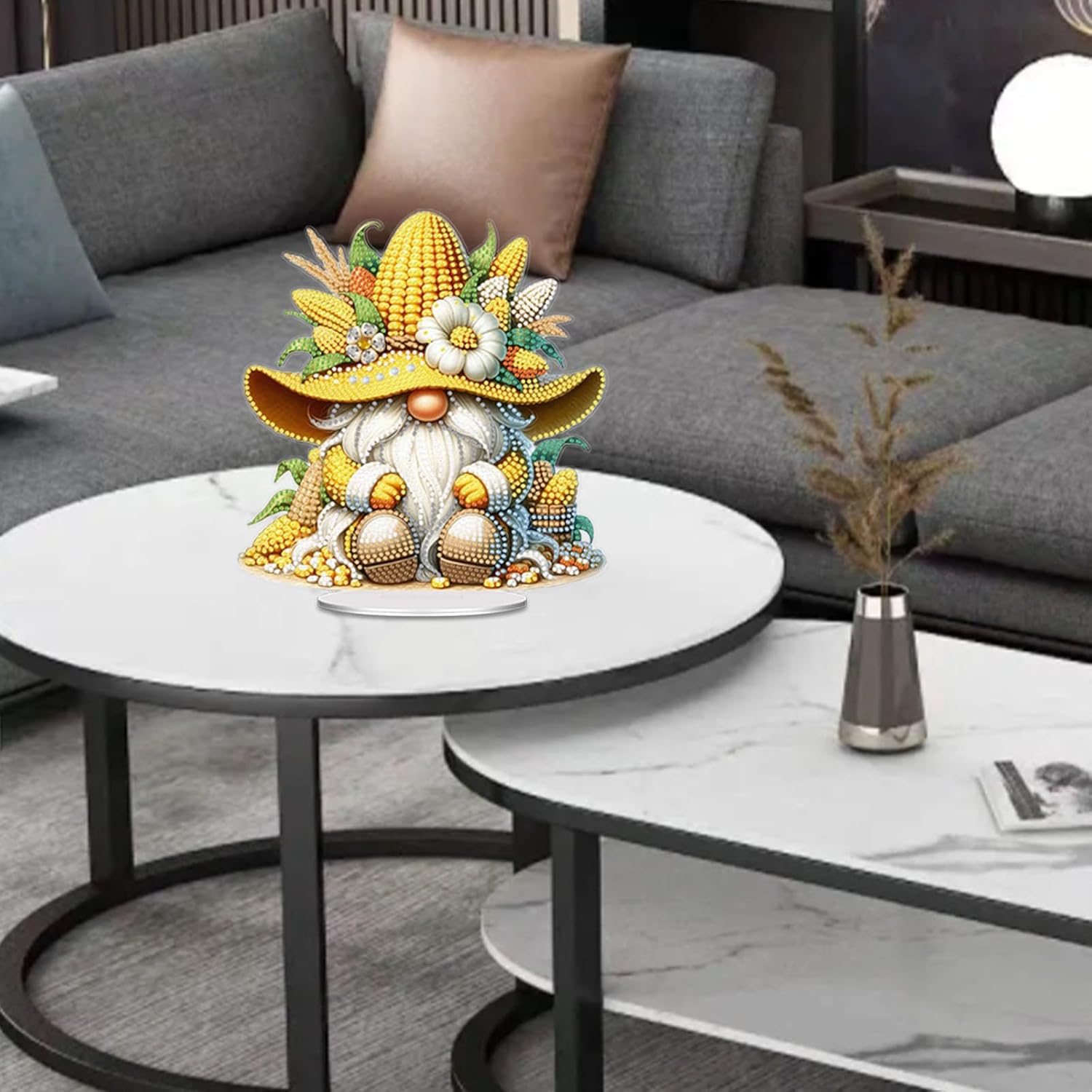 Product name: DIY dotted vegetable gnome ornaments (single-sided dotted)Diamond type: special shape + brilliant diamondProduct size: as shown in the pictureProduct material: acrylicProduct packaging: color box packagingPacking size: about 25X25X2.5cmThe product includes: 1X drawing board for single-sided dot-drilling ornaments, 1X oval small base, 1X dot-drilling kit, 1X dot-drilling tool kitDIY diamond art painting production steps:1. Open the package and check whether the diamond art painting tools are complete;2. According to the resin diamond color coding, select a color on the plate. If you paste the same color at one time, the speed can be increased;3. Find the corresponding color code on the canvas and start pasting until completed;4. After completion, in order to make the diamond art painting stable, you can put some books on the canvas for a while;5. Finally done.Notice:This is diy diamond art painting, it is not finished, you need to finish it yourself. All products are measured manually, please allow 1-2cm deviation