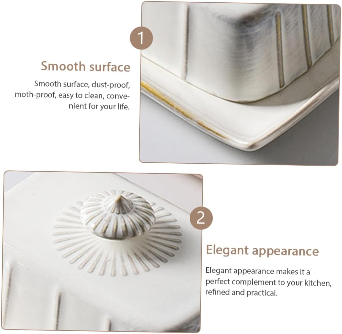Package Include 1 x Set of Butter Box with Lid Features -Product Info:Butter box -Material: Ceramic dishes. - workmanship the practicality and durability. Special color with excellent design, it is a nice decor butter dish. - With cover design, good air-tightness, convenient storage. Suitable for all kinds of snacks, and healthy, easy to take vintage butter dish. - Smooth and delicate surface, easy to clean, bright color does not fade, fine grinding vintage ceramic butter dish. - Ceramic material, stable heat resistance, direct microwave heating. Suitable for restaurants, dessert shops, kitchens and other places butter plate. - Excellent workmanship, practical design, creative shape, very stylish and chic. Not easy to fade, safe white ceramic butter dish with lid.Goods Informationceramic butter dish with lid It is a good choice for personal use or as a gift.cute butter dish It can the appearance of the table.domed butter dish This is a butter plate full of style romance.beautiful trendy butter dish Its surface is smooth and delicate, not hurt your hands and the design is beautiful