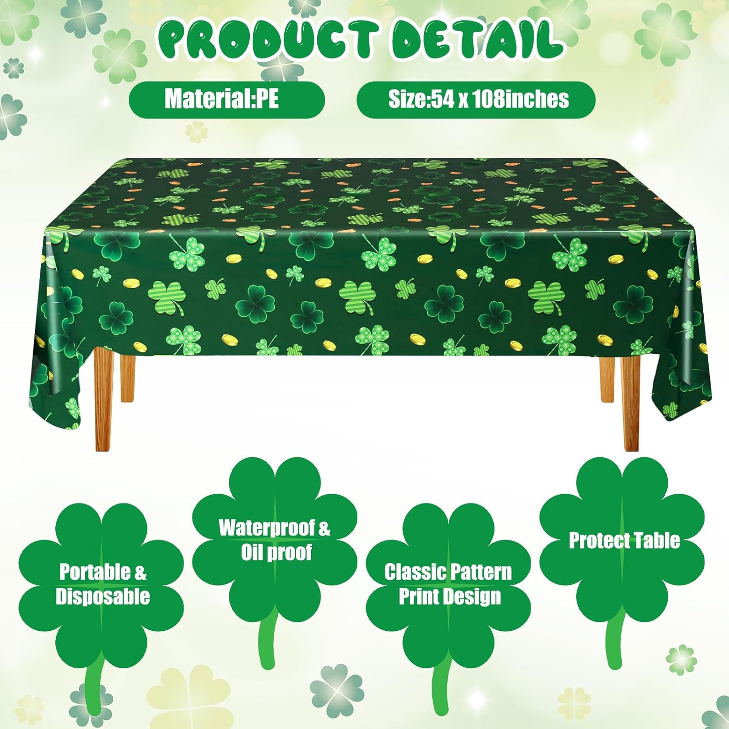 Features: Mainly painted in lively shades of green, symbolic of the festive spirit and Irish heritage, this st pattys day tablecloth radiate an irresistible charm that is sure to captivate your guests. St Patricks Day plastic tablecloth serves as both a practical table protector and a spectacular decoration, adding a splendid visual element to your dining atmosphere. Specifications: Material: plastic Mainly color: green Size: about 54 x 108 inch/ 137 x 274 cm Package includes: 8 x St. Patrick's Day tablecloth Notes: Manual measurement, please allow slight errors on size. The color may exist a slight difference due to different screen displays.