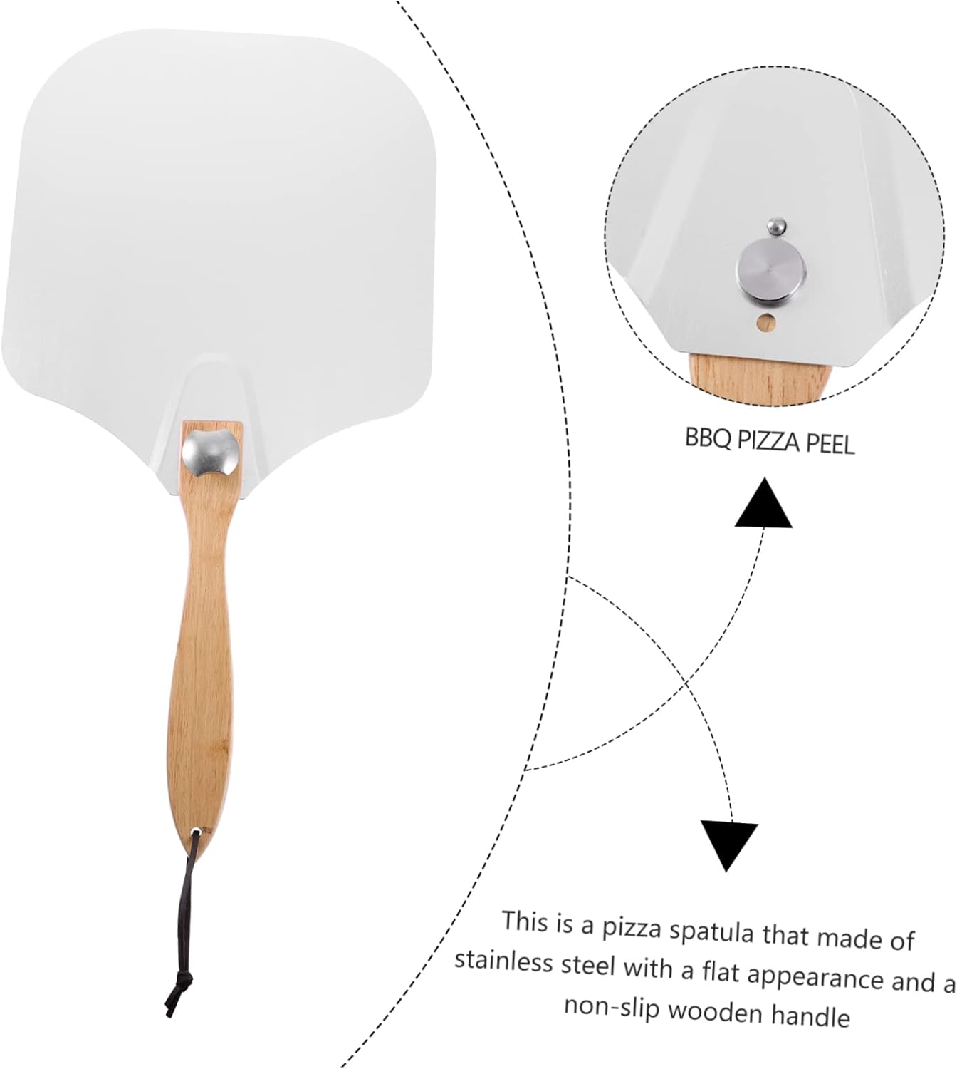 Package List 1 x pizza spatula Features -Material: Stainless steel, wood Pizza Transfer Peel -Color: White Kitchen Pizza Shovel -Size: 61.00X31.00X0.30cm/23.97X12.18X0.12in Baking Pizza Peel. - Lightweight stainless steel pizza paddle body, not to easy to break, not , to use. Stainless Steel Pizza Peel - The wooden handle is firm and strong, non-skid, heat- , easy to hold, comfortable to grasp. BBQ Pizza Peel - The size is not too long but is suitable for outdoor pizza ovens and is extremely portable Pizza Paddle. - Wood handle to prevent from burning your hand from the oven or from the hot baked goods Pizza Shovel. - Folding wood handle, easy to use, easy to store, for baking, pizza making use Cooking Spatula.Goods DescriptionFolding Pizza Peel It can be widely used in kitchen, restaurant, bar, BBQ party, etc.Wood Handle Pizza Paddle Adopts high hardness material, more and healthier than plastic ones.Kitchen Pizza Shovel Anyone who likes cooking will think this product-stainless steel pizza spatula is a great kitchen utensil
