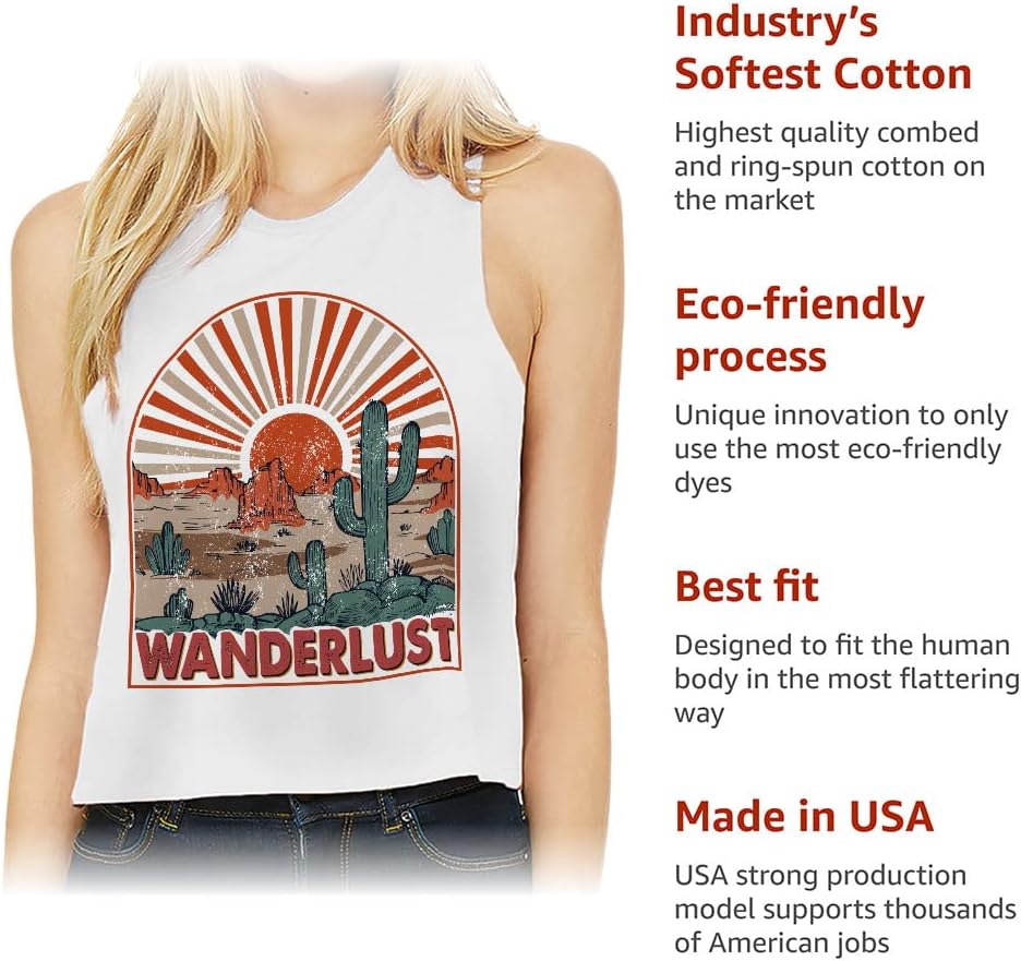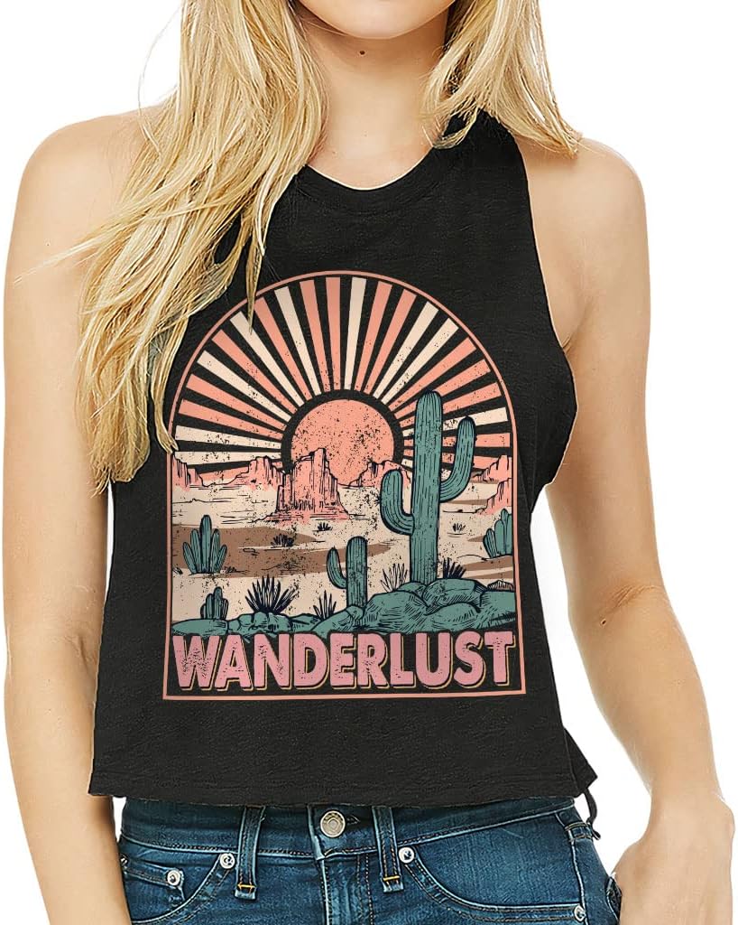 Cute and flattering Wanderlust Racerback Cropped Tank is suitable for most indoor or outdoor activities, such as gym, yoga, running, hiking, beach or relaxing around the house. Pair Cactus Women's Tank with your favorite sports bras, especially strappy ones, and high-waisted leggings, then you will enjoy cool and comfortable exercise throughout the summer.