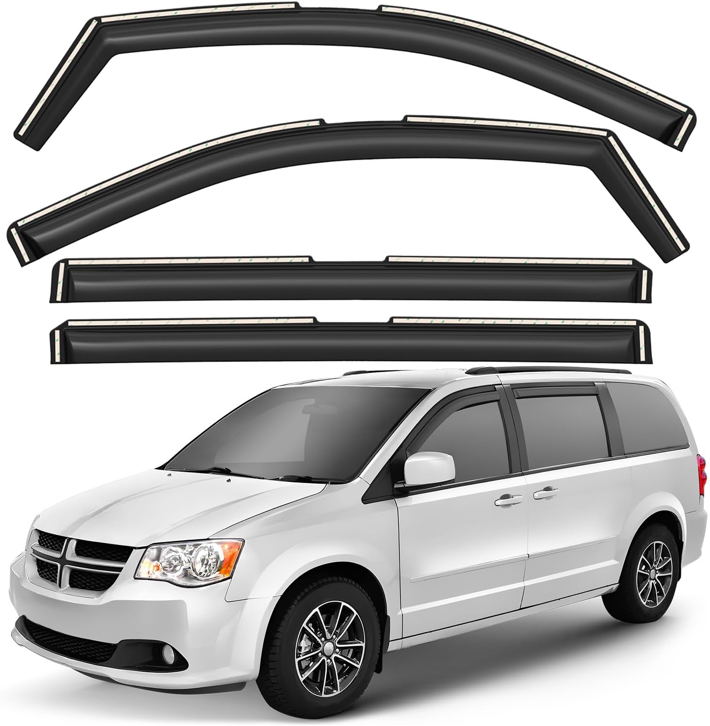 The Original GrandWheel window visors are manufactured with the polycarbonate. Other use acrylic material that cannot be same flexible and durable like polycarbonate. The GrandWheel window visors are engineered by using cutting-edge technology to reduce noise, deflect rain whilst and keep cabin cooled. The 4-piece set comes with easy to install 3M tape and installation manual. Specifications: - Condition: 100% Brand New; - Fitment: for Dodge Ram 1500 2009-2018 Quad Cab; for Dodge Ram 1500 Classic 2019-2024 Quad Cab; - Package includes: 4 pcs window visor deflectors (2 front/2 rear), prep pad, installation manual; - Color: Smoked black tinted; - Material: High quality polycarbonate. Features: - Fresh air even while raining; - Reduces sun glare; - Easy installation; No-drilling required; - In-channel installation; - Custom fit.