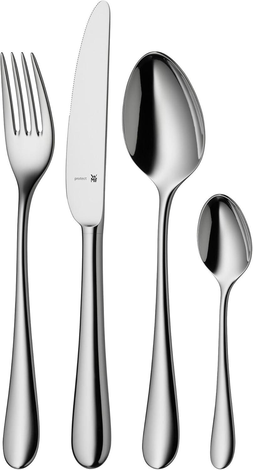 Product DescriptionMerit cutlery has timeless beauty, is unpretentious, yet has some fine details. Only when you hold it in your hand do you appreciate how pleasurable it feels. Thick material and rounded edges give this cutlery a pleasant tactile quality. The protruding knife blade is strikingly formed. Theeyeson the fork prongs are a stylistic nod to tradition. This cutlery set is enough for six people, and is also a good way of extending the two-piece set for twelve people. The set consists of six table settings with a knife, fork and spoon, Plus six cake forks and teaspoons.Box Contains6x Table Spoon6x Table Fork6x Table Knive6x Teaspoon6x Cake Fork