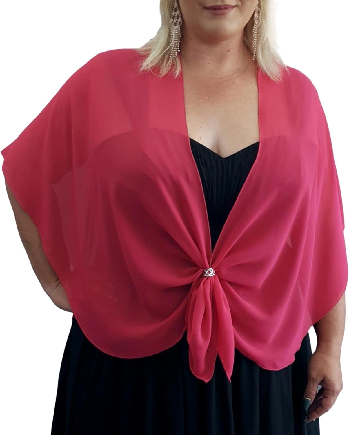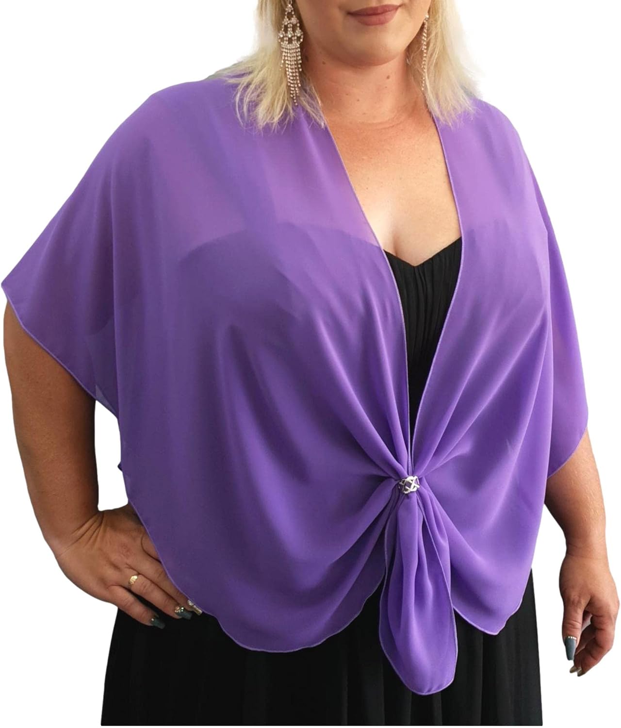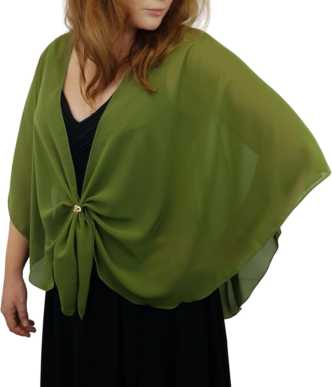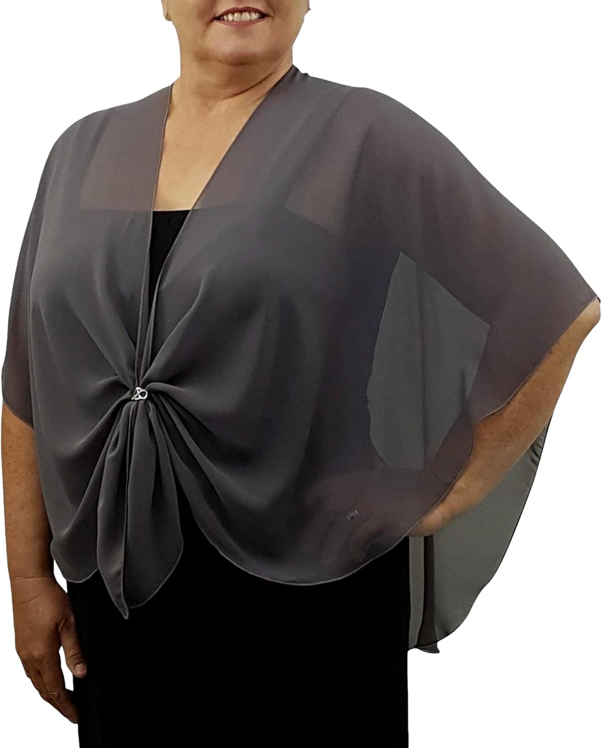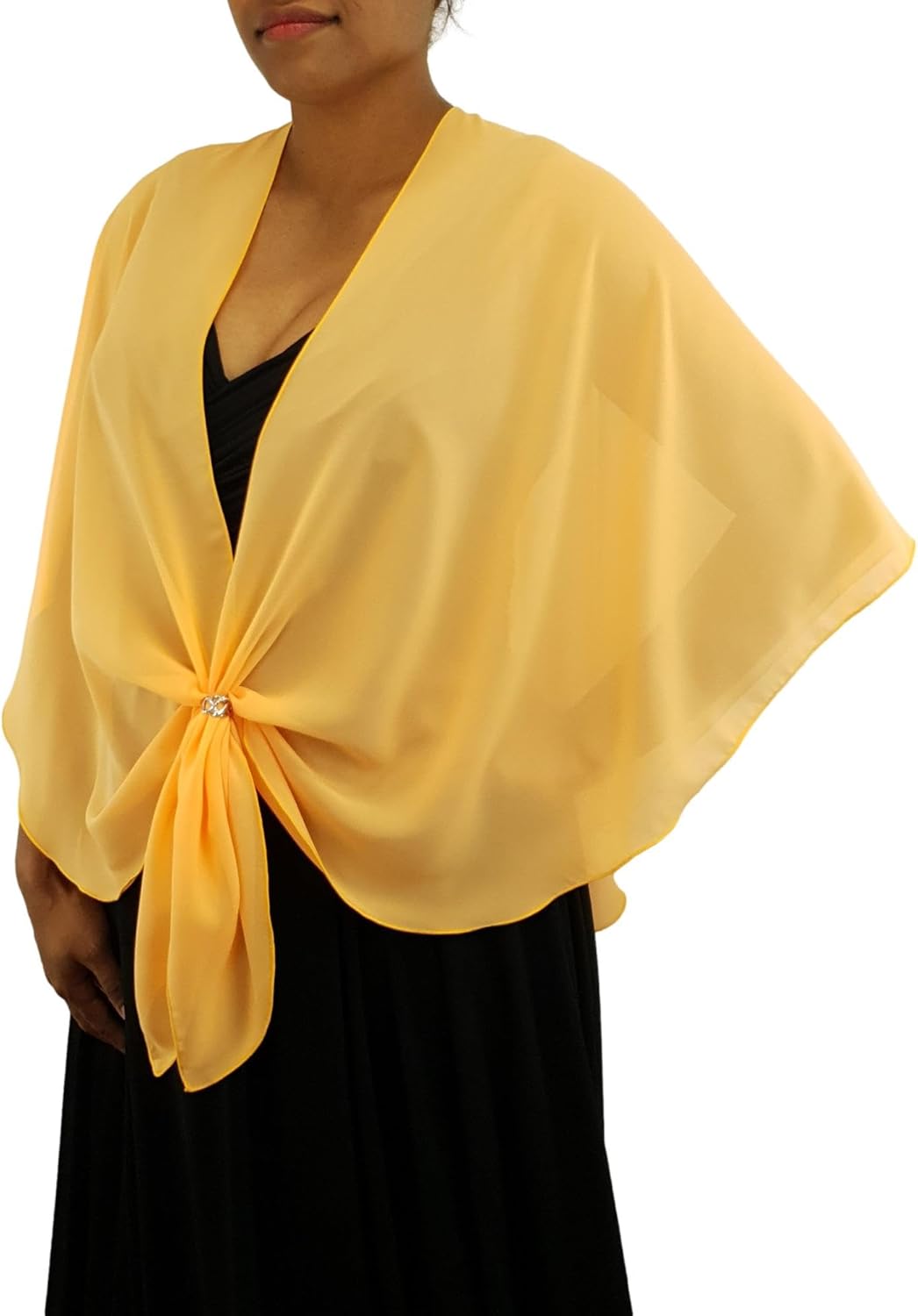 Love your outfit, but need to cover your arms? An elegant dressy sheer shawl is the answer. With so many lovely ladies needing to look their very best for their special events, we created The U Wrap - the perfect accessory for that strappy dress that was always a bit too "bare"! Now you can relax in your attire and enjoy your special dress up occasion. Cut in the shape of a U ... The U Wrap does not slip off your shoulders like a regular rectangle wrap. It can be worn with an open front, (so it does not hide your gown bodice), tied behind your back, or with the ends threaded through a rhinestone scarf ring buckle to drape softly over the bustline. Suitable for plus size girls and can be worn by the young and old - teens, graduating students, brides, bridesmaids, wedding guests, mothers or grandmothers. Take it on a holiday or honeymoon. How will YOU wrap........ The U Wrap?