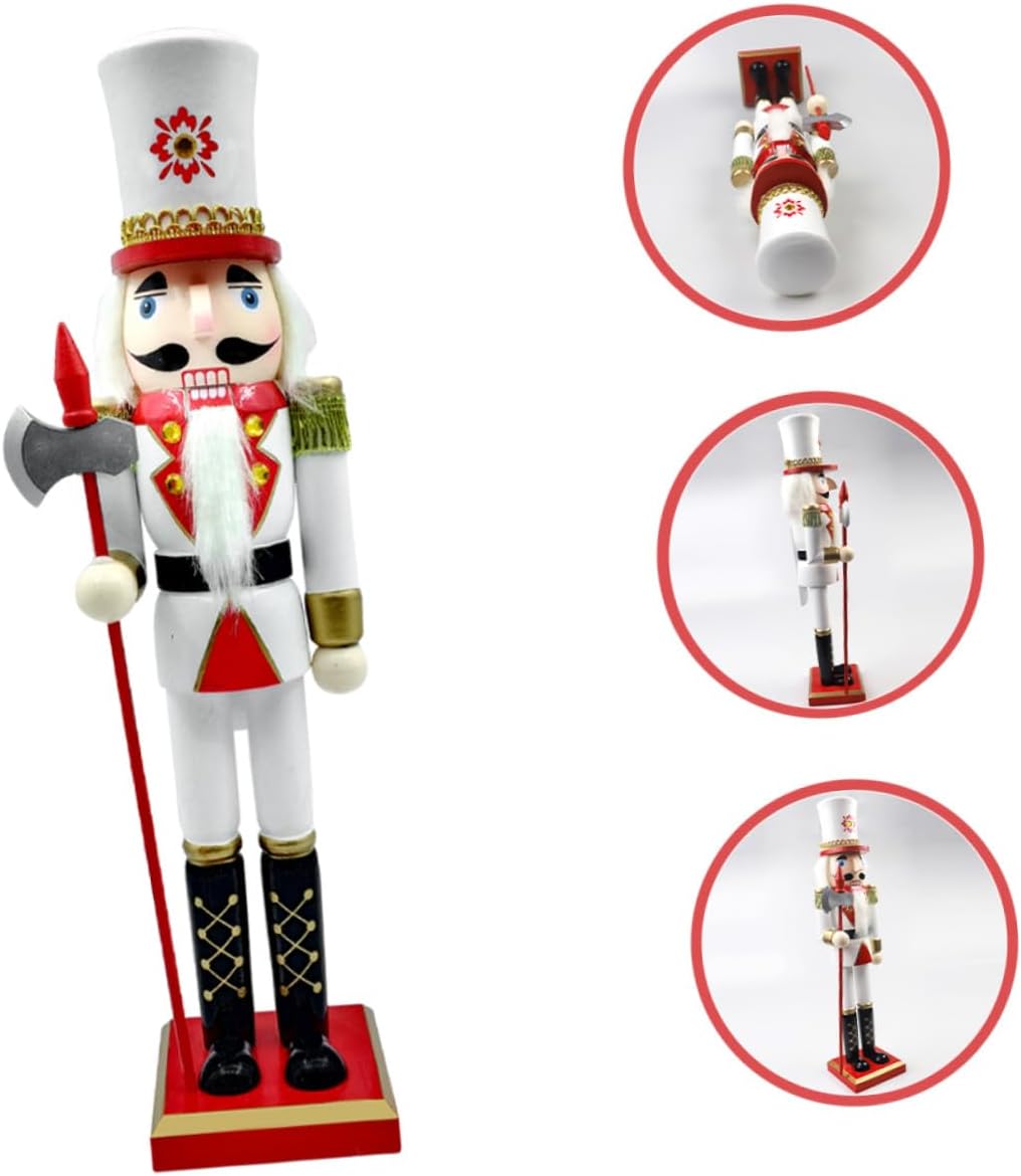 Package Include 1 x Nutcracker Ornament Features - Size: 39.50X10.00X8.00cm/15.52X3.93X3.14in -Material:Wood -Product Info:Nutcracker ornaments - Mainly made of wood material with bright and colorful hand-painted, the nutcracker statue is a great addition to Xmas decoration. - Excellent craftsmanship is carefully done to every detail to give this desk decor and lovely look nutcracker soldier. - A perfect choice for Xmas, wedding, Valentine's Day, engagement, anniversaries, holidays and more Wood Nutcracker Ornaments. - ColorWhite - Designed to be a fun and unique nutcracker decoration, this is a perfect Christmas ornament that can add festive holiday cheer to your home nutcracker centerpieces for tables. - A good reminder of the nutcracker story, to bring the Christmas joyful atmosphere into your home nutcracker figurine.Goods Descriptionnutcracker decorations This nutcracker ornament will be an excellent ornament to create the Christmas atmosphere.Wood Nutcracker Ornaments The classic Christmas nutcracker appearance design makes it conform to the Xmas theme.nutcracker soldier ornament This nutcracker statue is and realistic, and is shaped into a lovely appearance