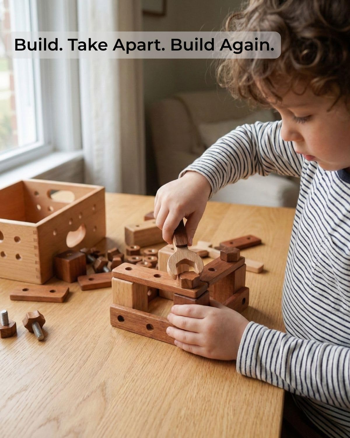 | Included Components | Cube Blocks x2, Rectangular Blocks x2, Hex Nuts x8, Bear-shaped Screws x2, Floral Screws x2, Hexagonal Screws x2, Slotted Screws x2, Mallet ×1, Slotted Screwdriver ×1, Wrench ×1, Short Connectors x4, Long Connectors x4, Tool Storage Box x1 |