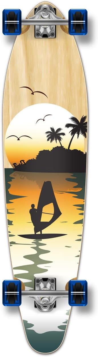 What you're looking at is a Punked Rasta Kicktail Longboard. In addition to having a kick tail, it also has a medium concave that will help with big tricks, pivots, slides, ollies and much more. The longer wheelbase gives more stability for downhill speed boarding while also giving more foot space when cruising.