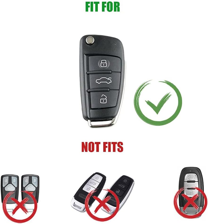 Features: 1. One pcs car key cover with keychain 2. 100% brand new and high quality, shown as picture 3. Made with premium quality zinc alloy material 4. Protect your smart key from scratches -Excellent matching the key size and accurate button position -Protect your auto keys from damage, marks, dust and scratches -Does not affect the signal of the car key Description: 1. A fashion look for your car key 2. It is extremely durable and will protect your smart key from everyday wear and tear 3. Very easy to install and use 4. Material: zinc alloy Fitment: Compatible for A1 2012-2018 Compatible for A3 2010-2019 Compatible for A6 2002-2009 Compatible for Q2 2016-2018 Compatible for Q3 2013-2021 Compatible for Q7 2005-2015 Compatible for TT 2008-2014 Compatible for TTS 2011-2015 Compatible for R8 2007-2015 Compatible for S3 2012-2019 Compatible for S6 2002-2008 Compatible for RS3 2012-2020 Compatible for RS6 2002-2009 Package Include: 1Pcs key case with keychain (not include the car key)